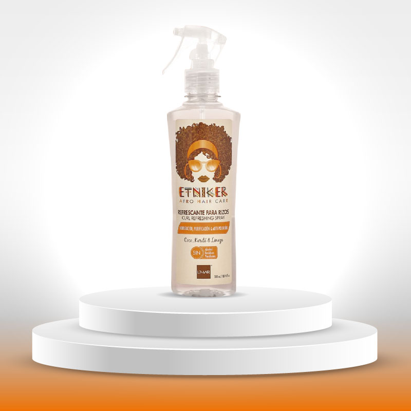 La fórmula del REFRESCANTE PARA RIZOS ETNIKER posee un alto contenido de agua, no contiene siliconas, ni aceites, ni alcohol, ni parabenos, ni activos que se depositen en la fibra capilar. Además está formulado con un activo que posee triple acción anti polución: energiza el bulbo capilar, protege el cuero cabelludo y refresca la fibra, todo esta para defender el cabello de la contaminación y los malos olores. ESTE PRODUCTO ES IDEAL PARA PARA REACTIVAR Y REFRESCAR TUS RIZOS AL DÍA SIGUIENTE O ENTRE LAVADOS.