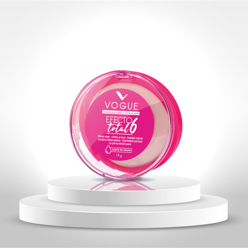Base compacta con acabado polvo, ayuda a proteger del sol, unifica el tono de la piel, cubre imperfecciones, controla el brillo y con textura suave.